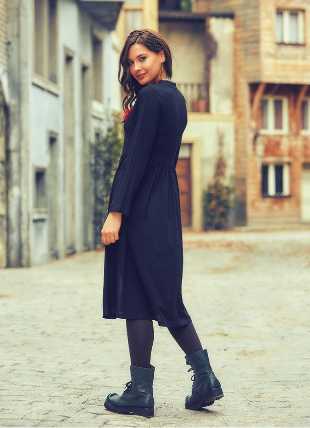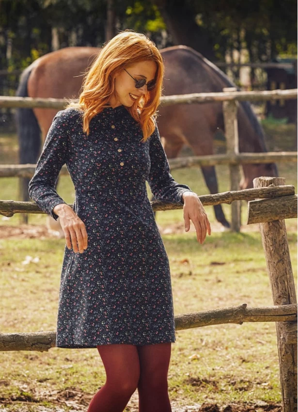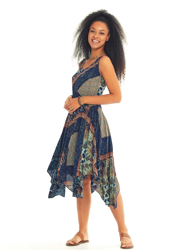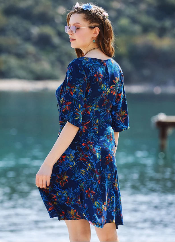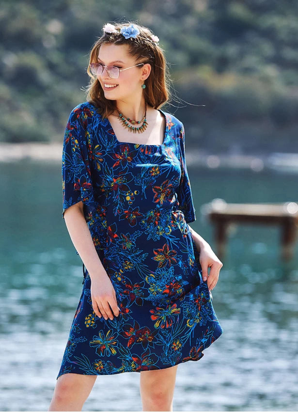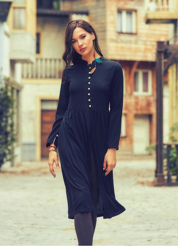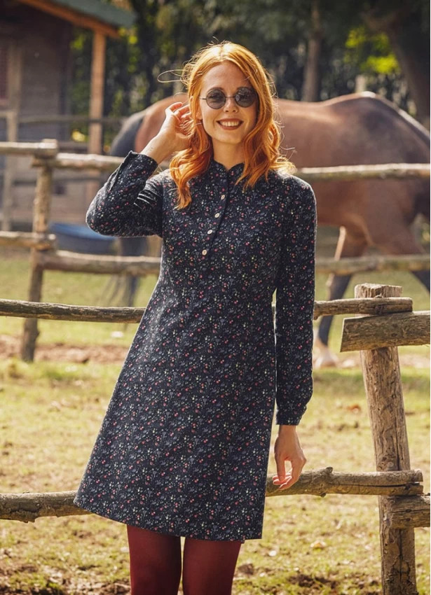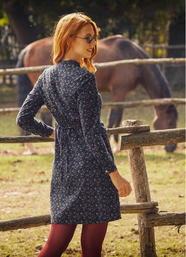 MANDARIN COLLAR BLUE PATTERNED DRESS