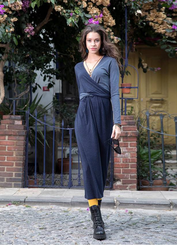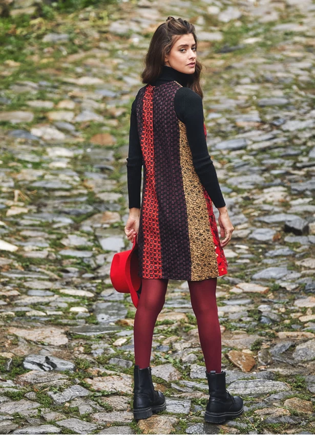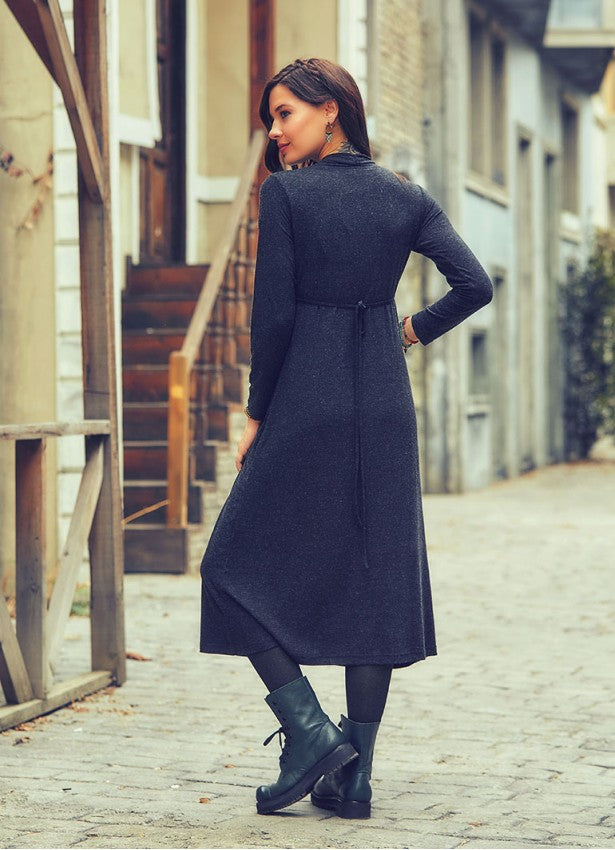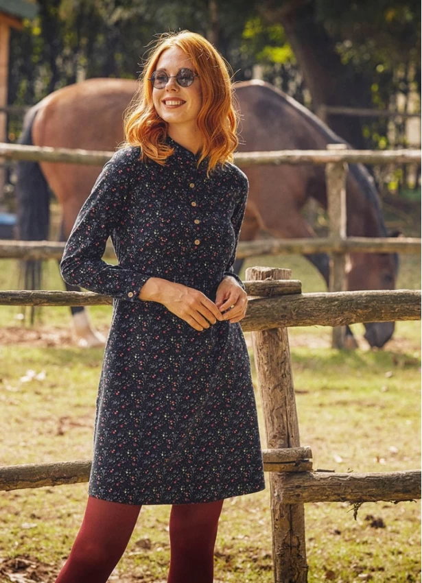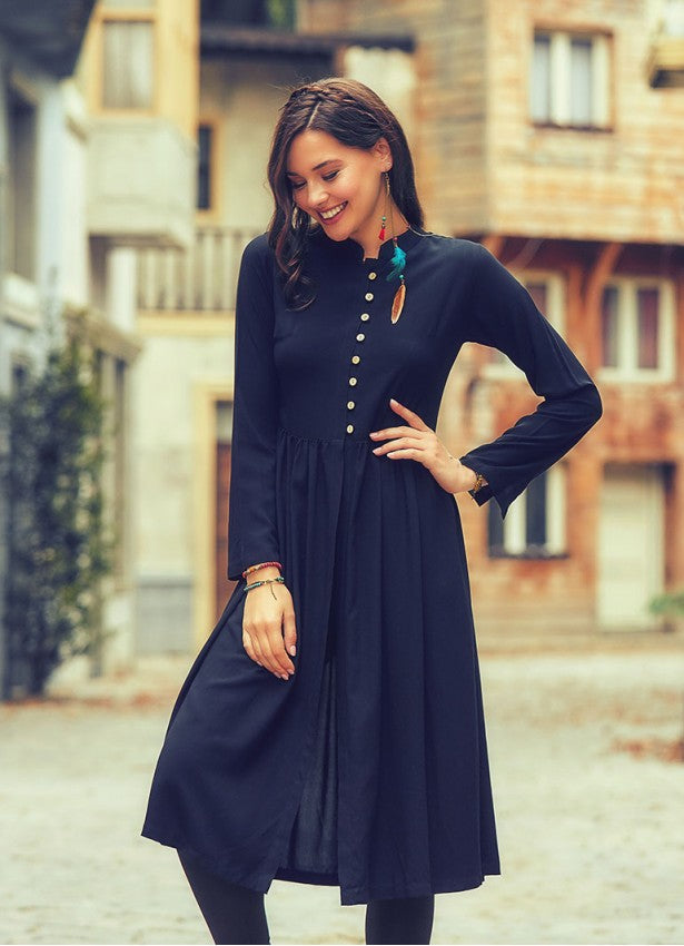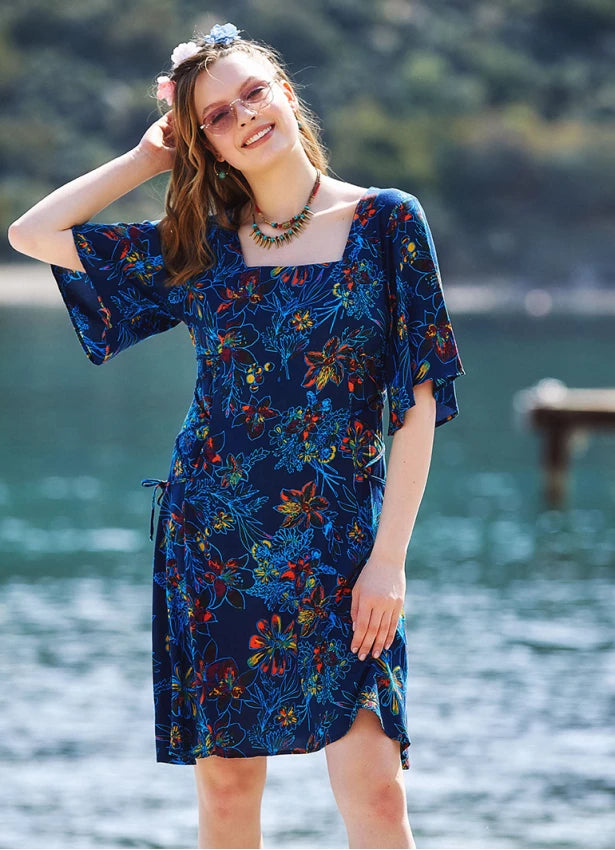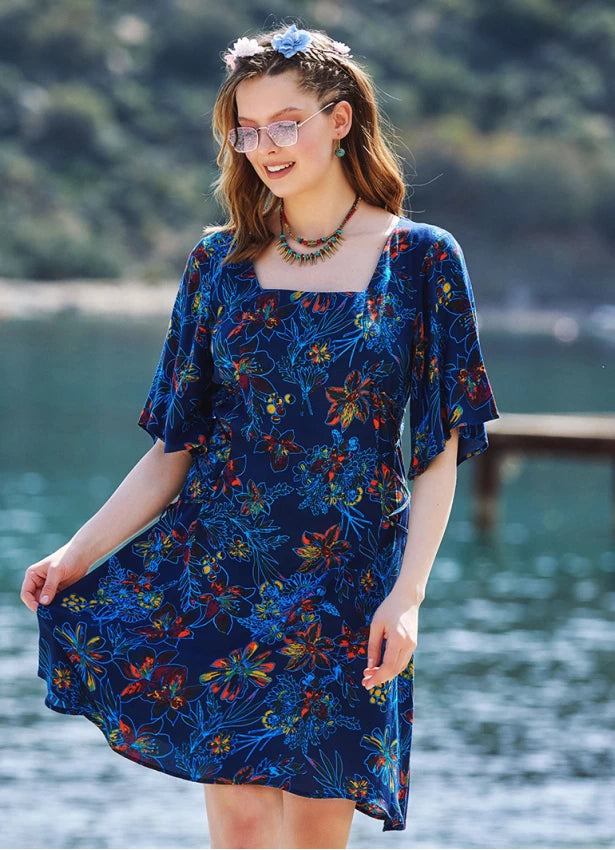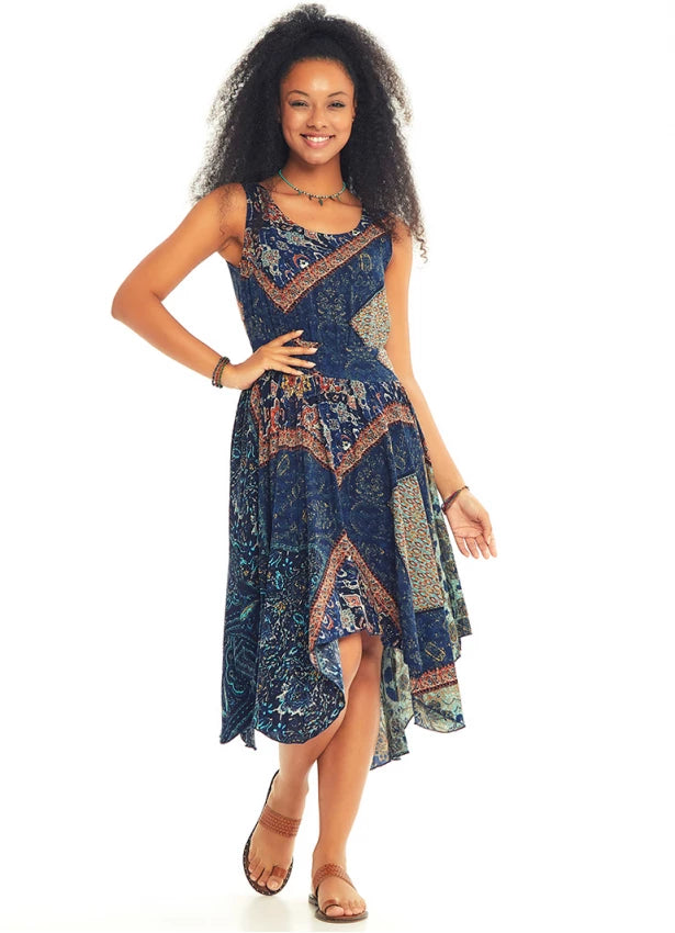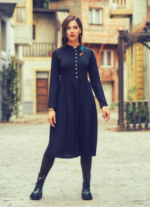 MANDARIN COLLAR BLUE PATTERNED DRESS