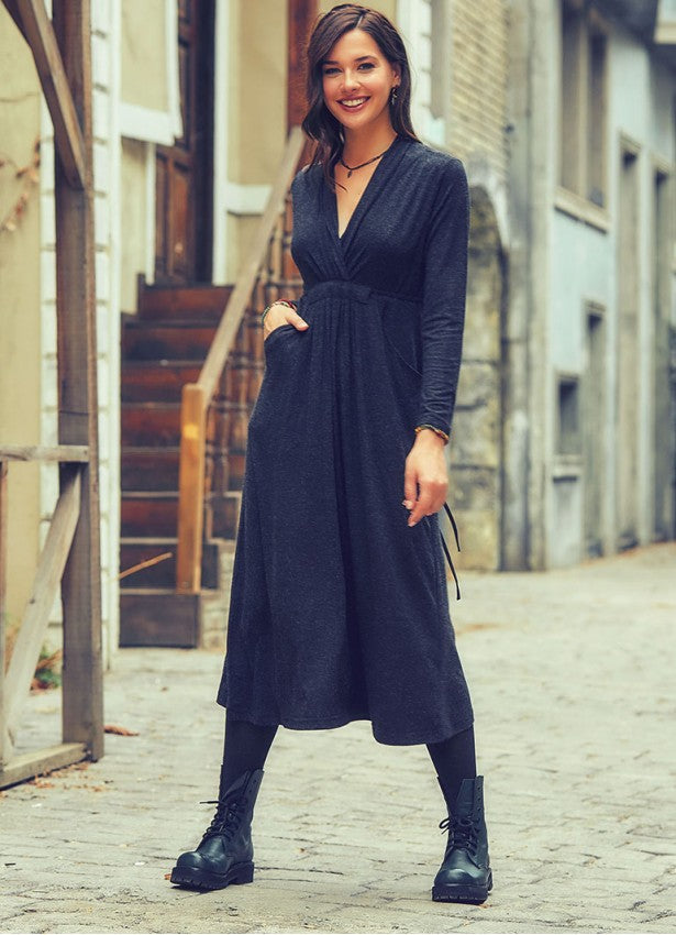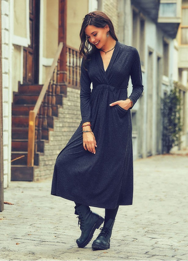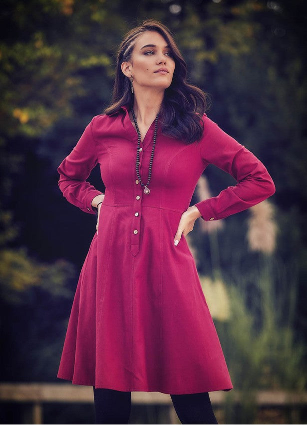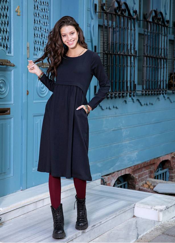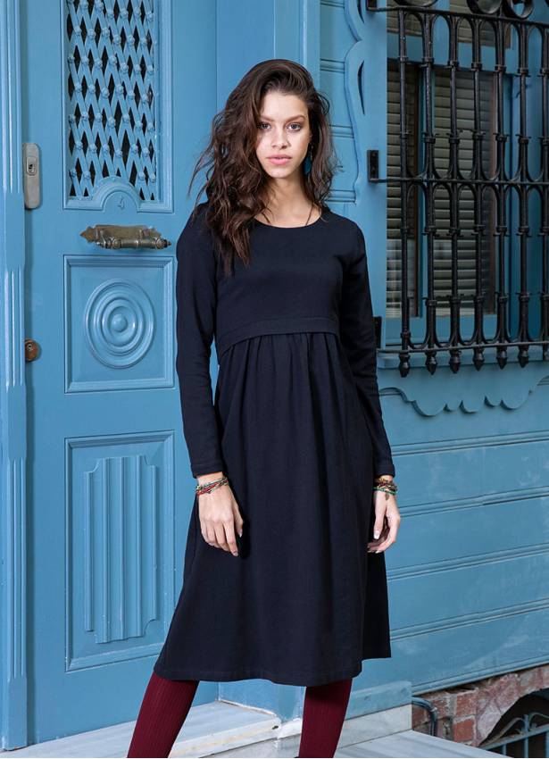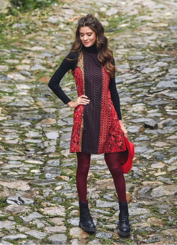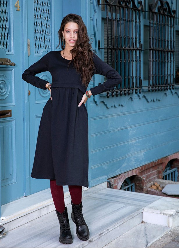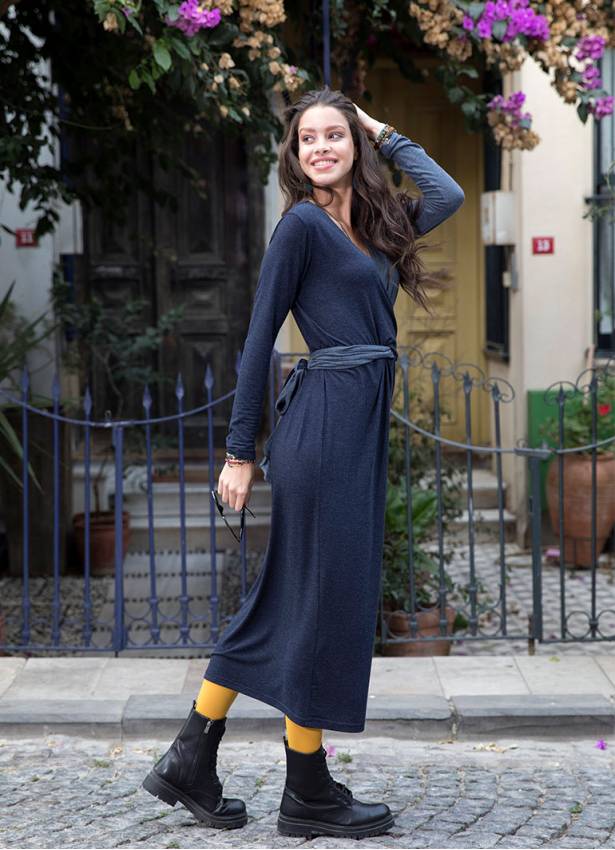 MANDARIN COLLAR BLUE PATTERNED DRESS