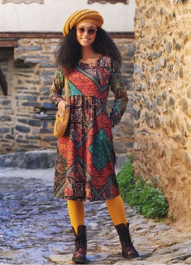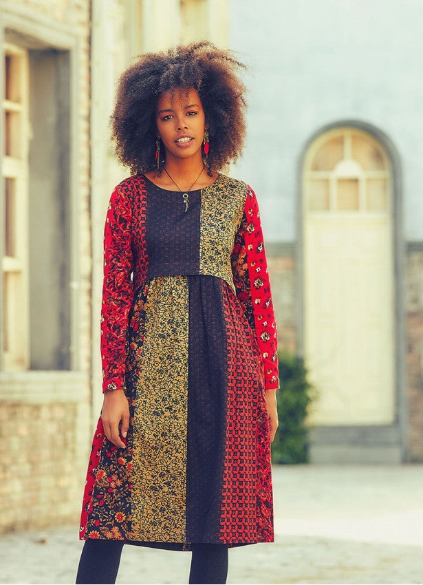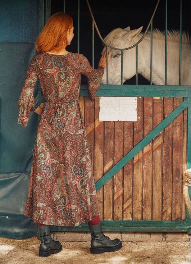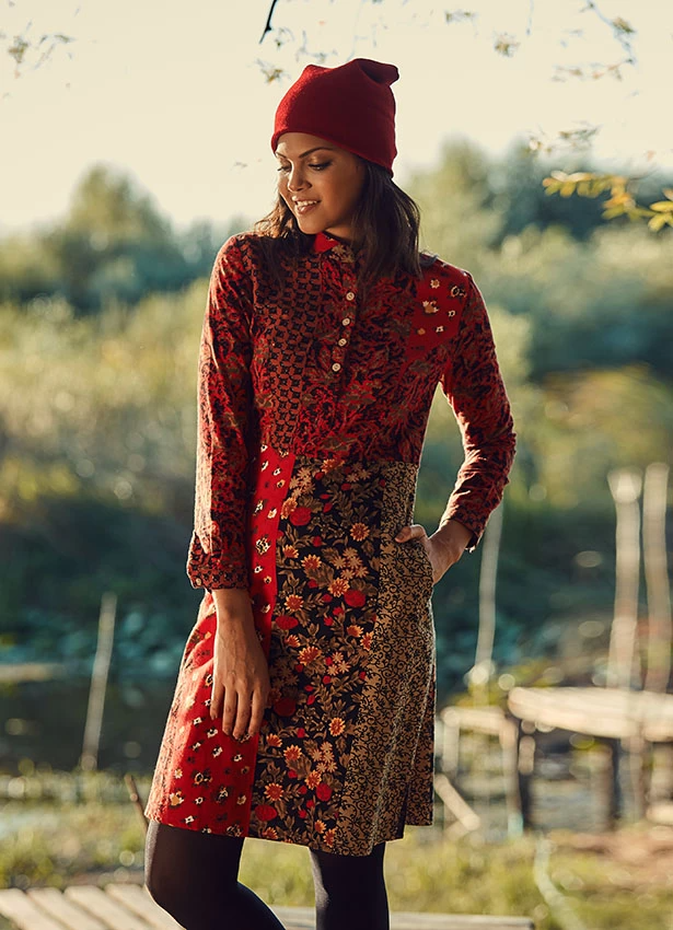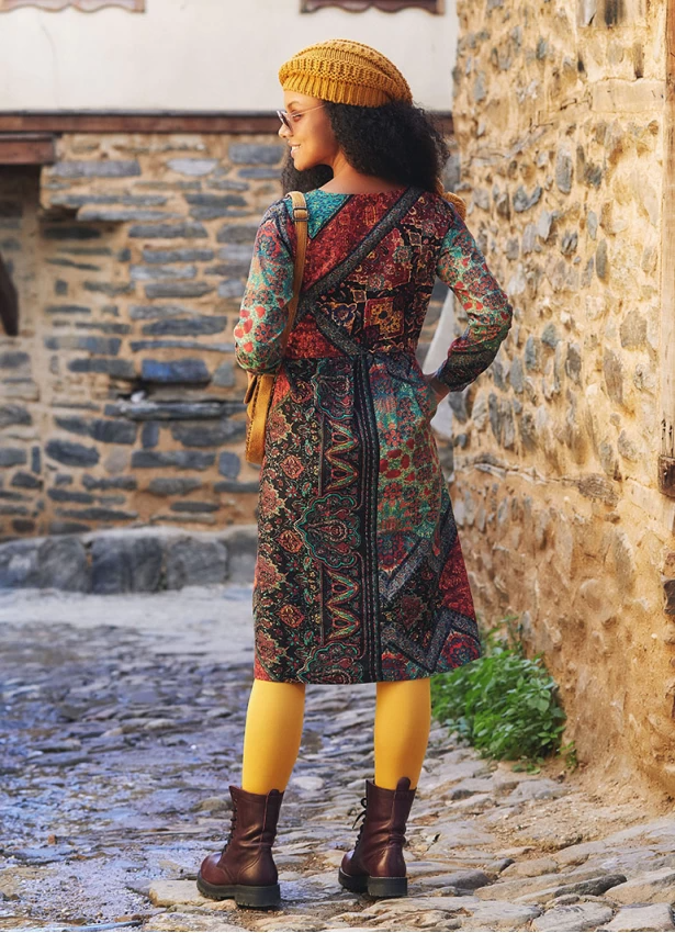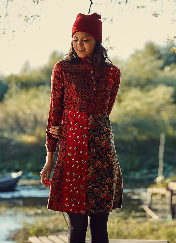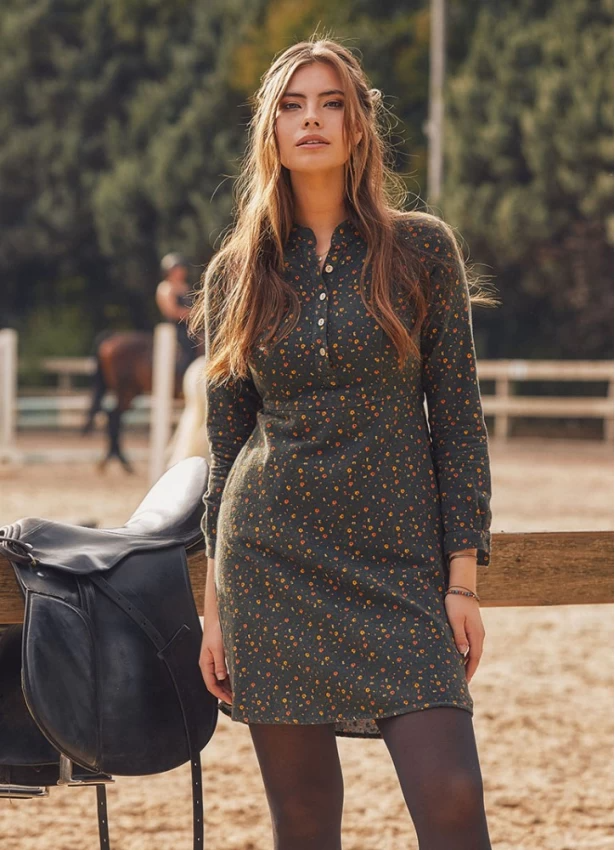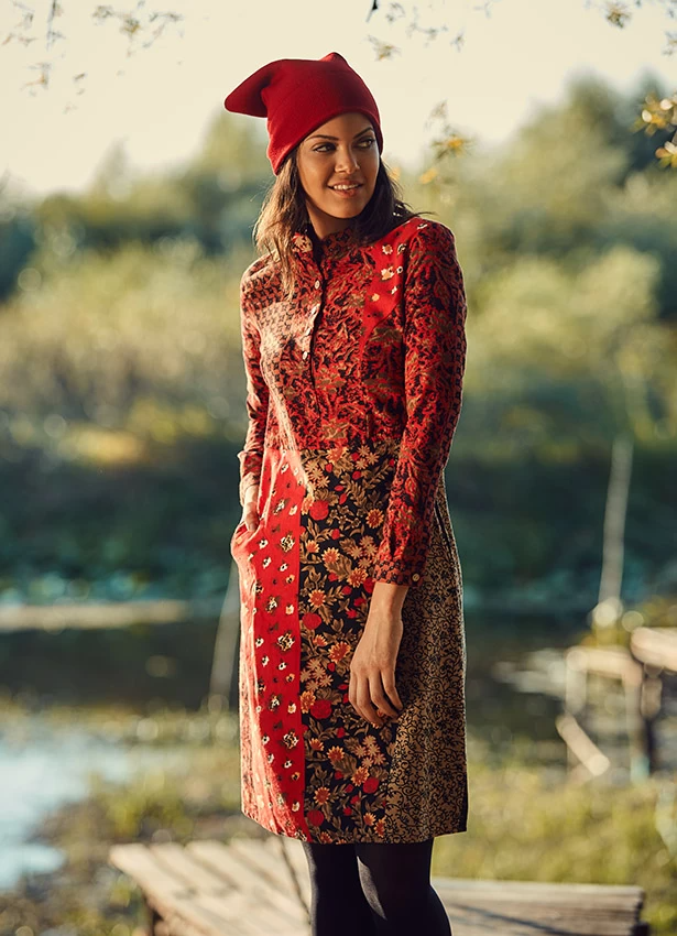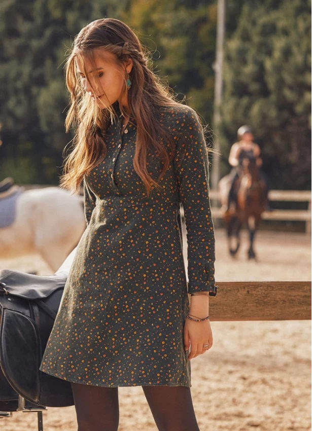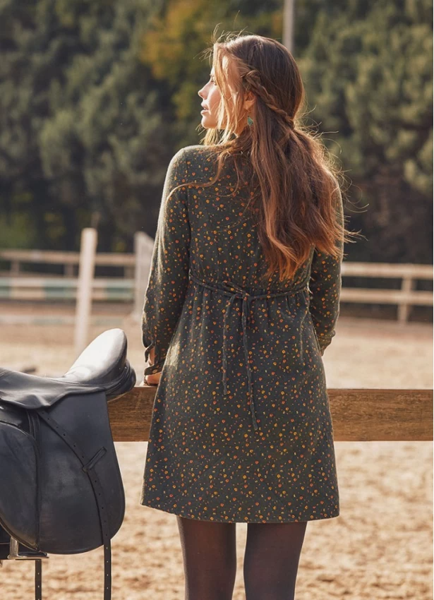 MANDARIN COLLAR GREEN PATTERNED DRESS