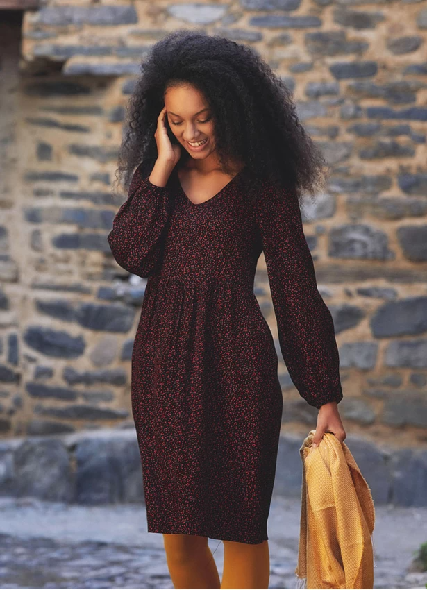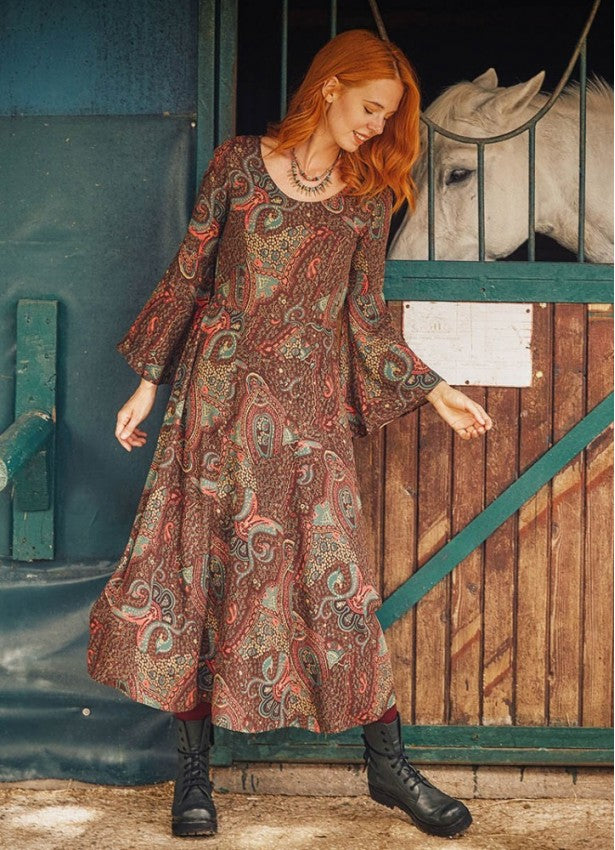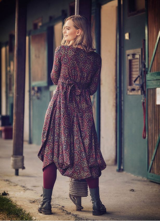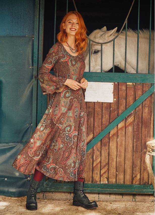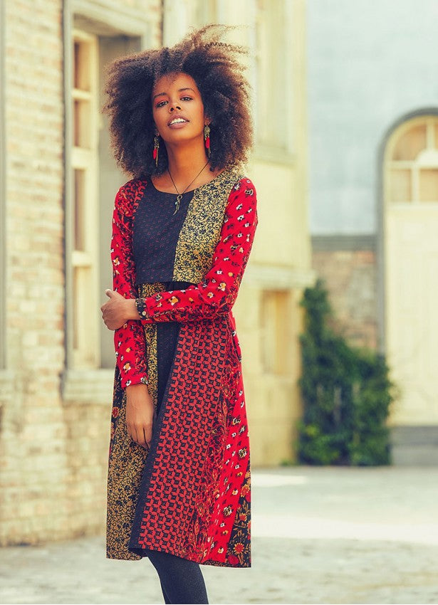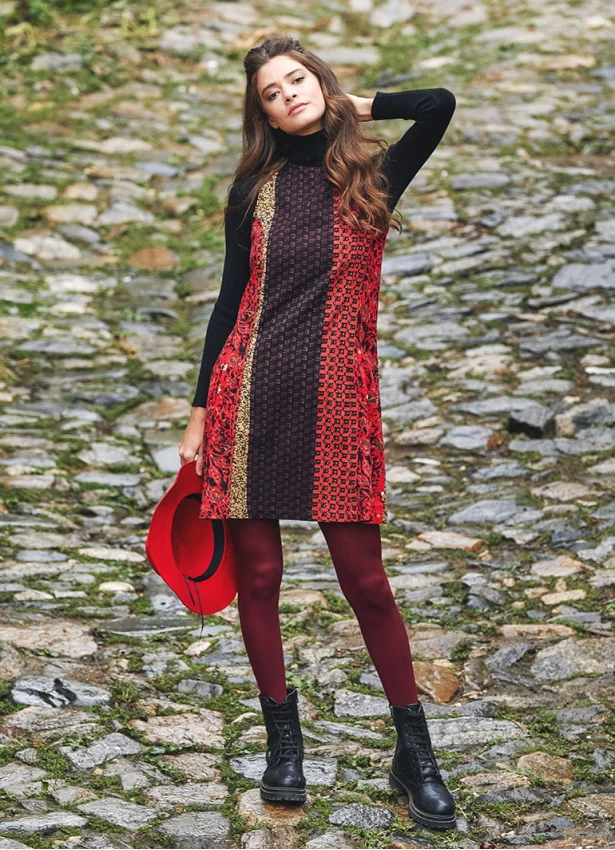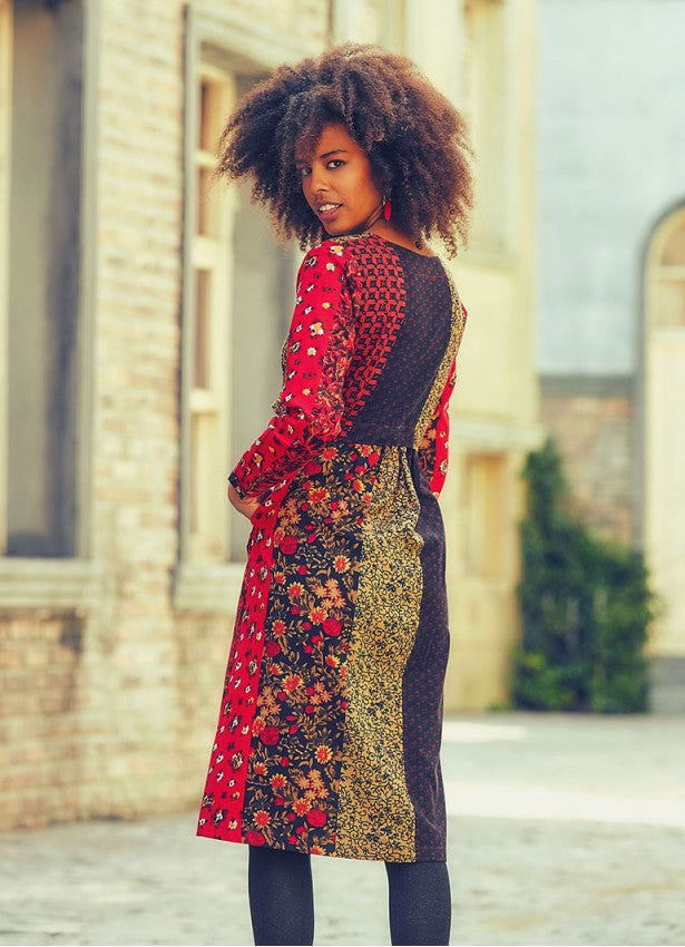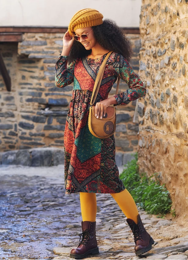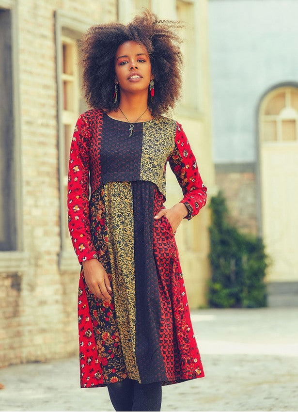 MANDARIN COLLAR GREEN PATTERNED DRESS