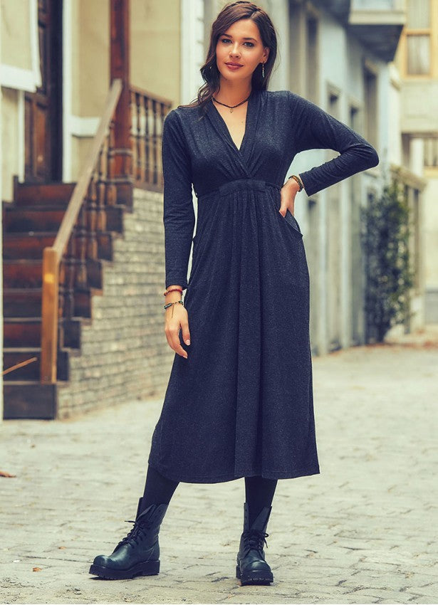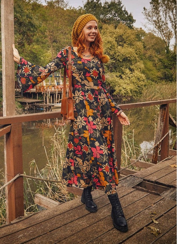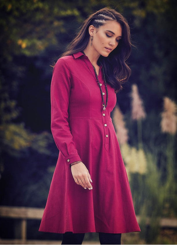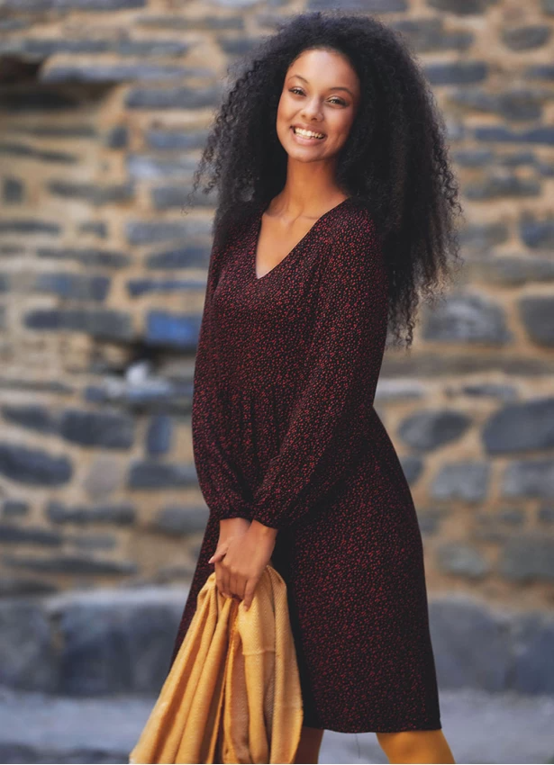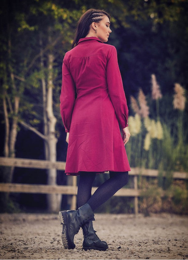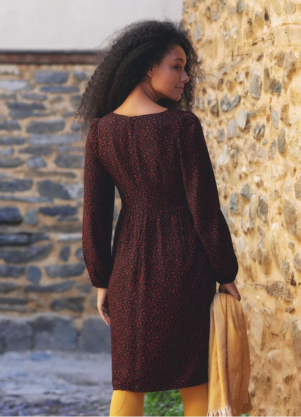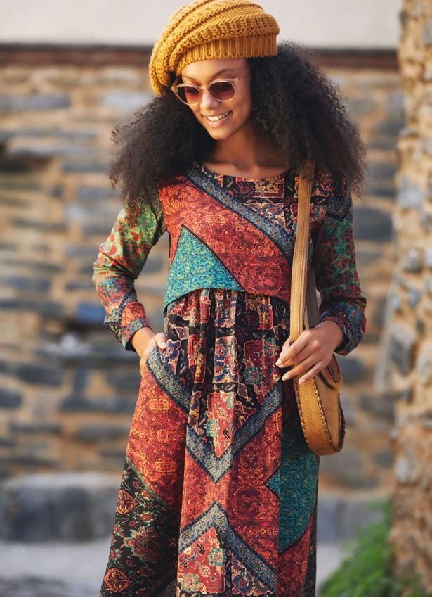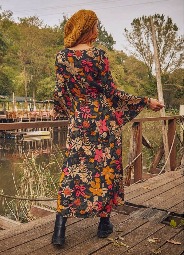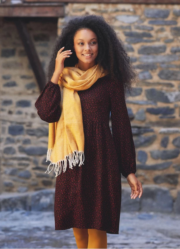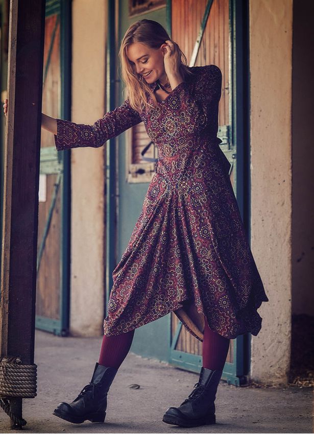 MANDARIN COLLAR GREEN PATTERNED DRESS