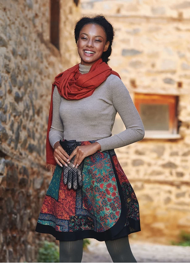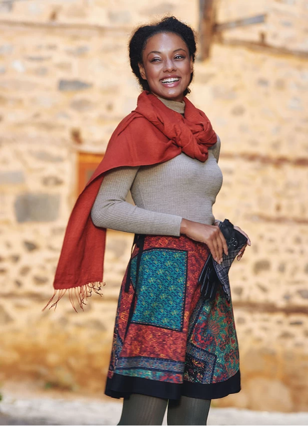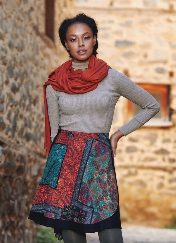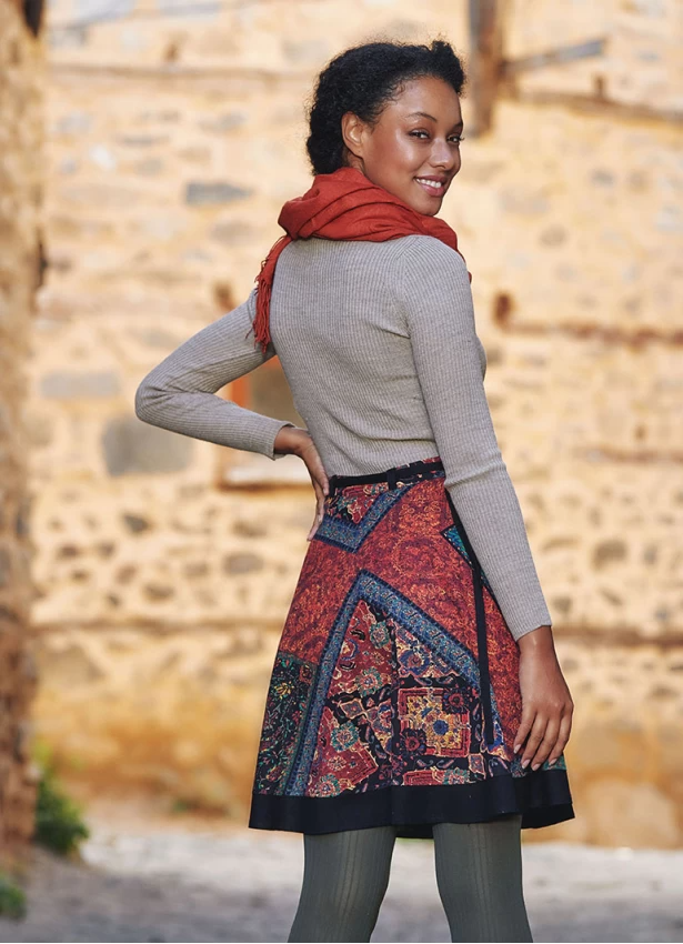Wide Binding Hem Detail, Round Cut Wrap Front, Tie Waist, Flared, Short Wrap Skirt